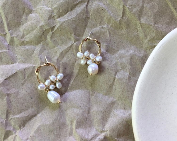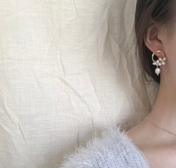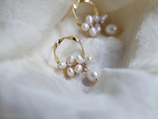 淡水パールに繊細なゴールドの組み合わせが高級感のあるピアス☆