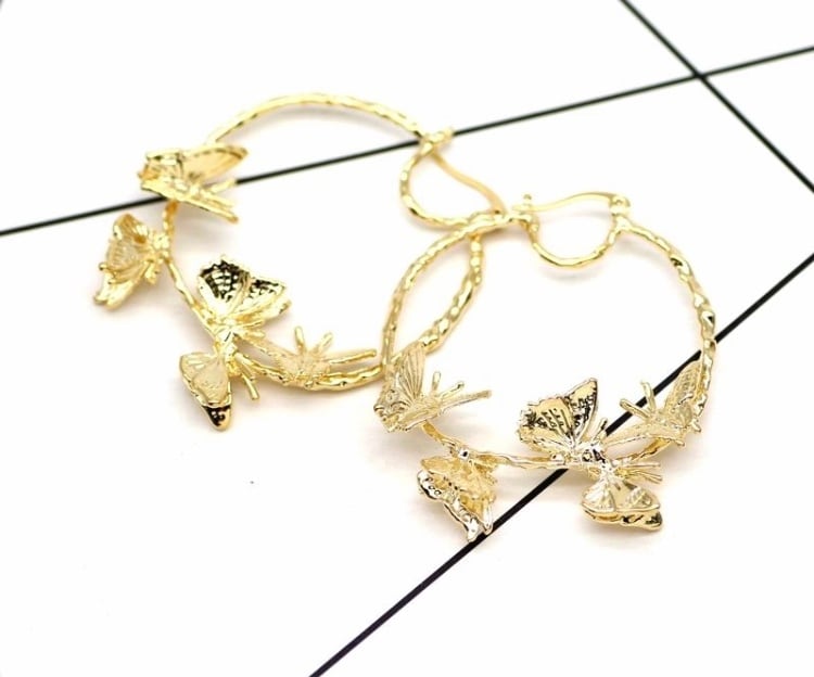 高級感のある彫金風の作りがステキなフープピアス☆春に向けてのバタフライモチーフ☆