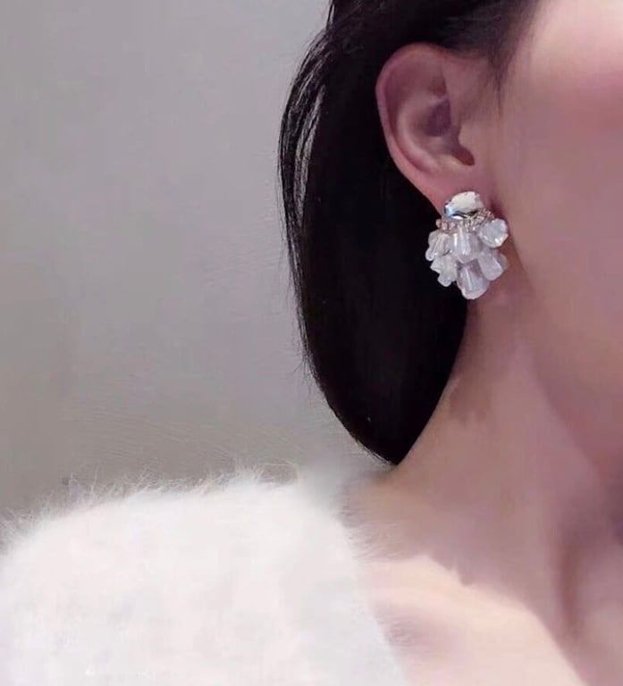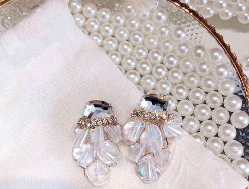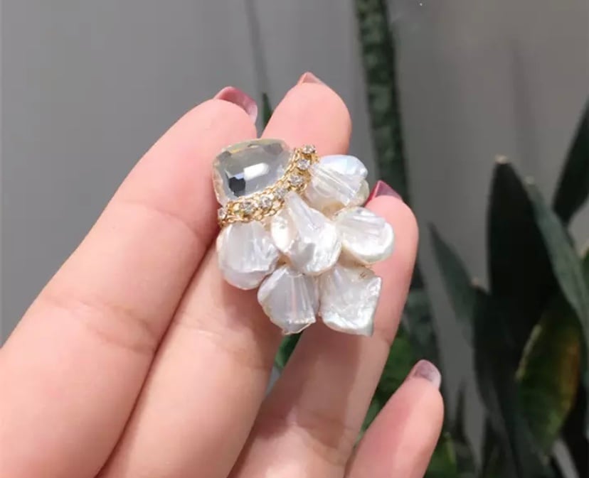淡水パールと大きめストーンのニュアンス感と高級感のあるピアスです☆