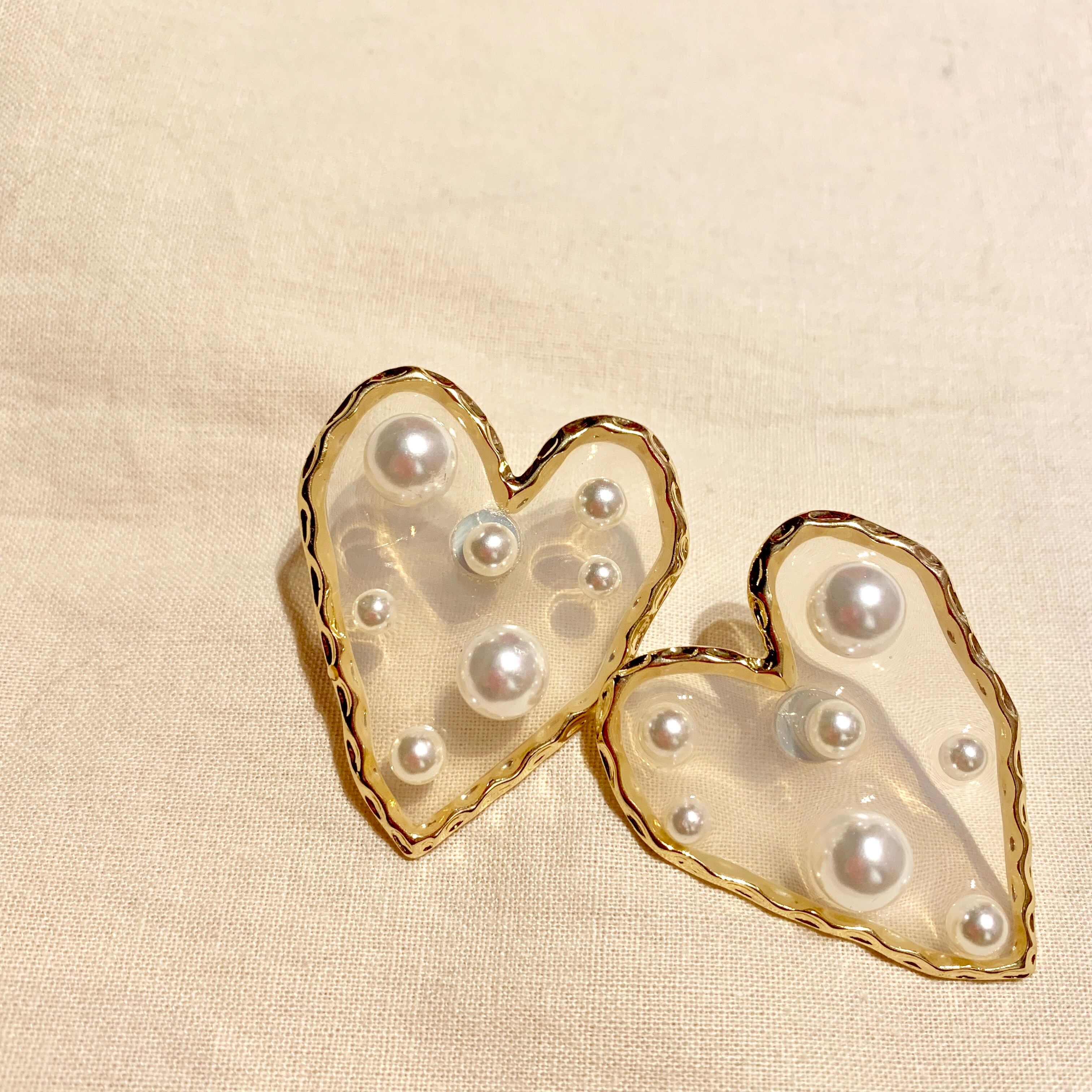 クリアハートパールドットピアス
