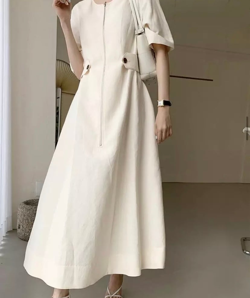 程よいrelax感でラインも綺麗なコットンリネンワンピースです☆カラーはオフホワイトです。