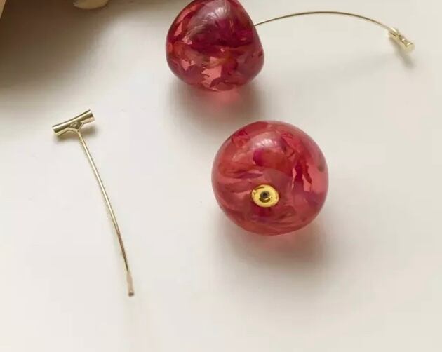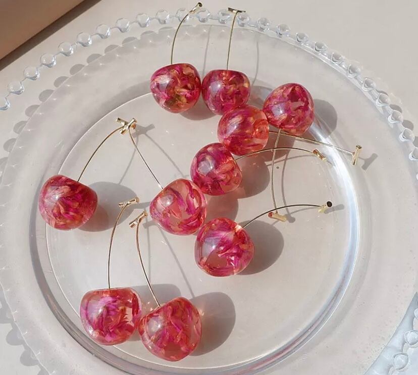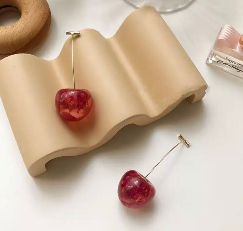 本物に近いサイズのアクリルチェリーが目を惹く可愛いピアスです☆