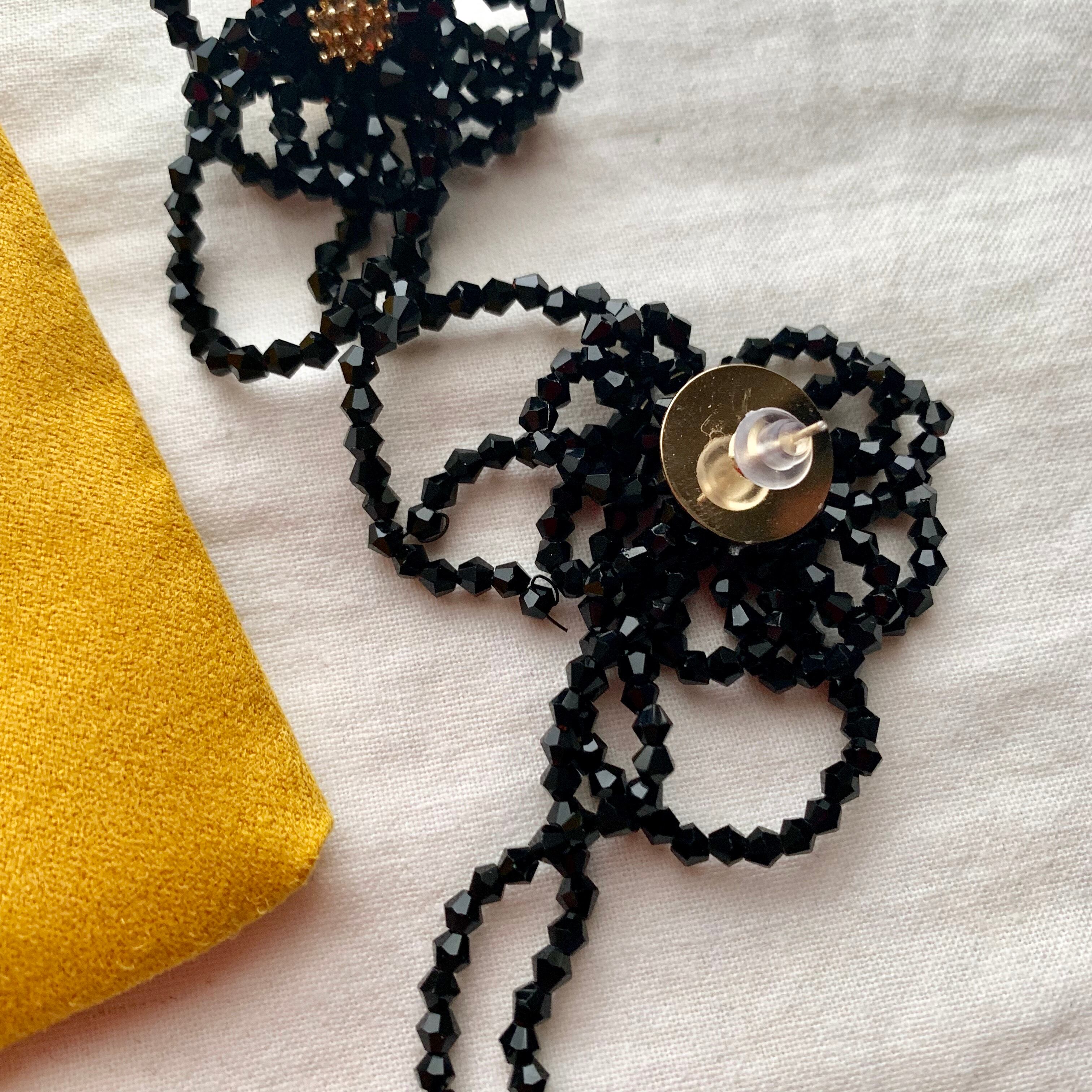 カットが美しいクリアビーズとブラックビーズで雰囲気もガラリと変わります☆大ぶりでもビーズなので軽くて◎