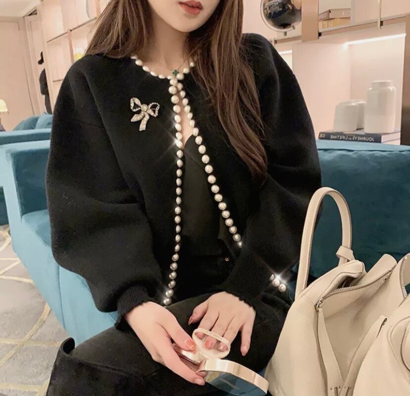 粒の大きめなパールがたっぷりとデコレーションされたニットカーディガンです☆